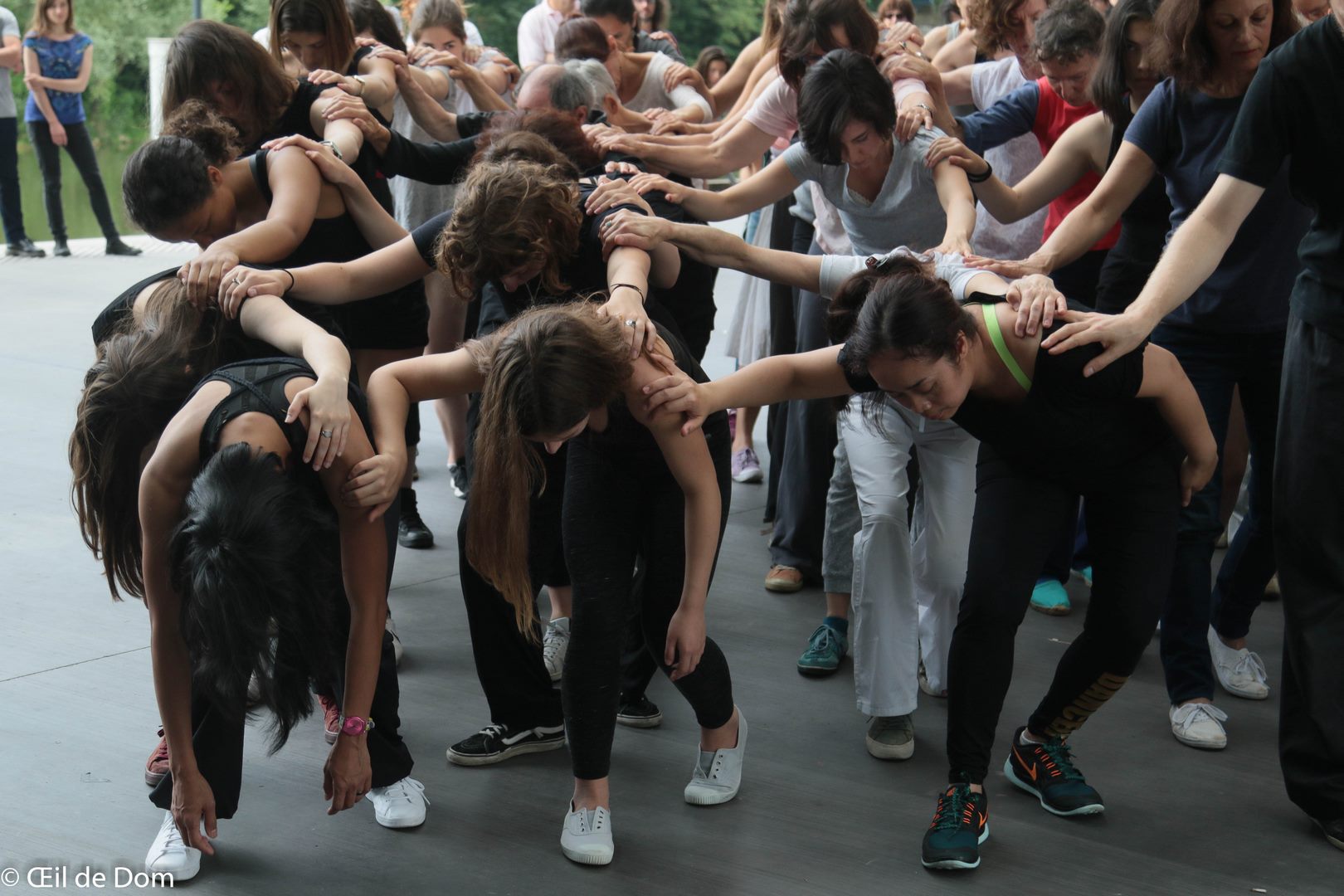 Par ondulations, flux et reflux, frémissements, cette danse invite à vivre une expérience collective d’écoute et d’accordage les uns aux autres en utilisant des mouvements simples tels marche, sautillements et pliés.