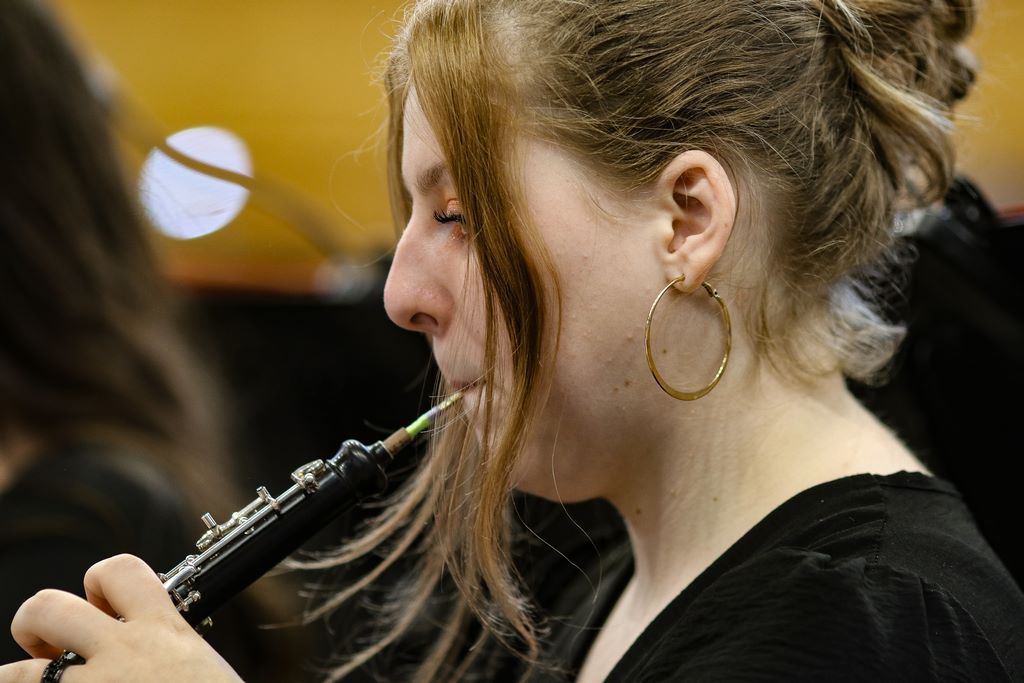 Aujourd’hui une soixantaine de musiciens nous emporte pour un voyage gourmand sous la direction d’un chef gourmand également : Mathieu Guilain,.
