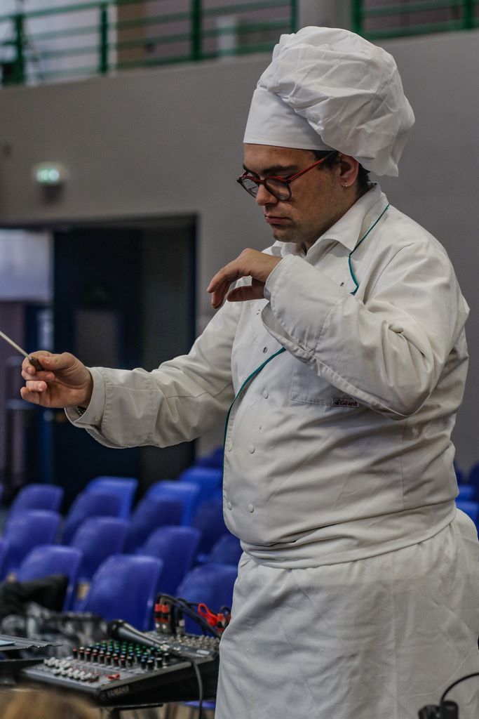 Aujourd’hui une soixantaine de musiciens nous emporte pour un voyage gourmand sous la direction d’un chef gourmand également : Mathieu Guilain,.