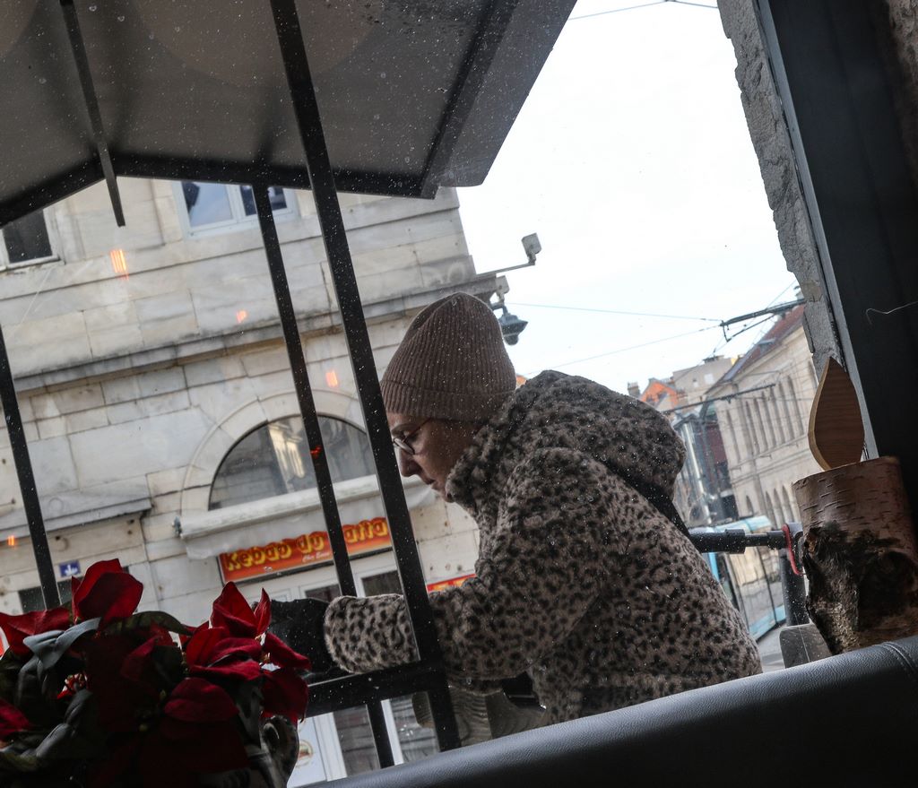 La penseuse/léopard est à la table voisine, les drôles de paroissiennes sont au bout du pont, le Petit Poucet est sur la rive, le ciel couleur de fin des temps est au-dessus de ma casquette, les herbes du diable sont à portée de main, le petit couple attend son heure, les fins branchages battent les flots et....le grizzly est dans l’ascenseur !