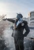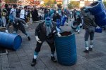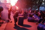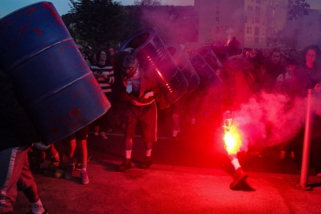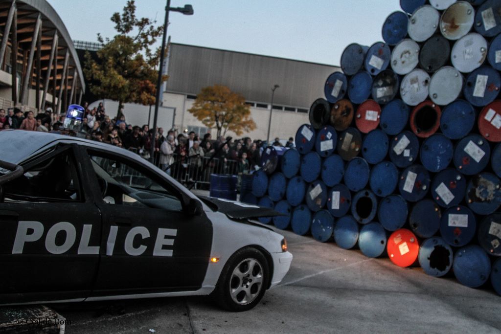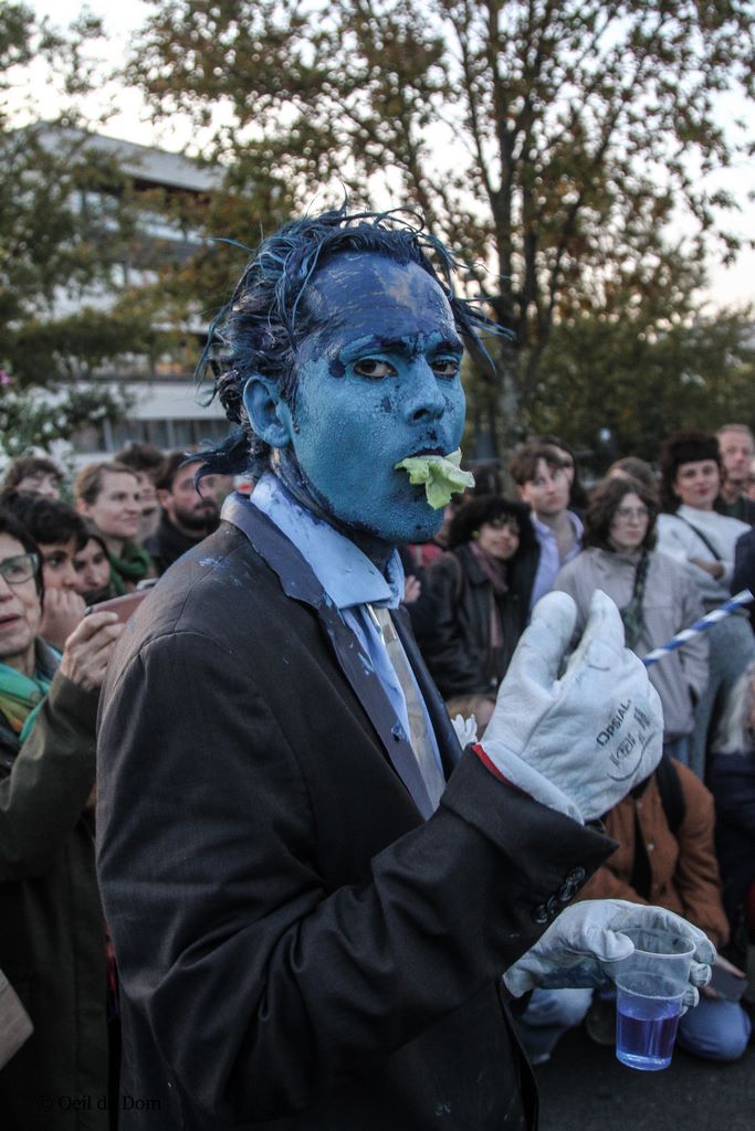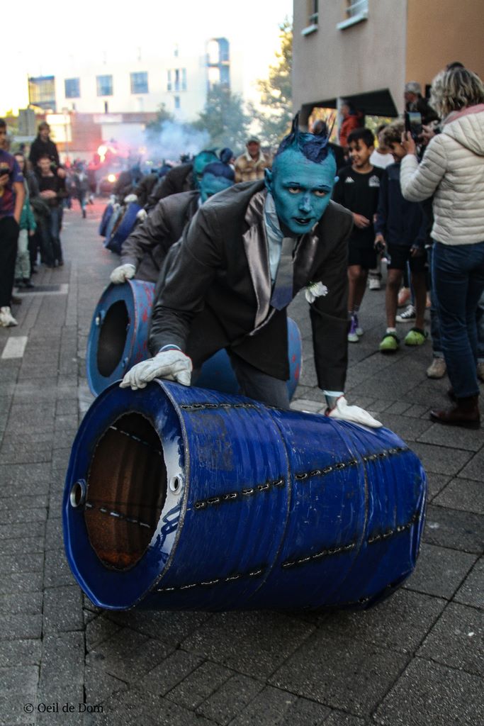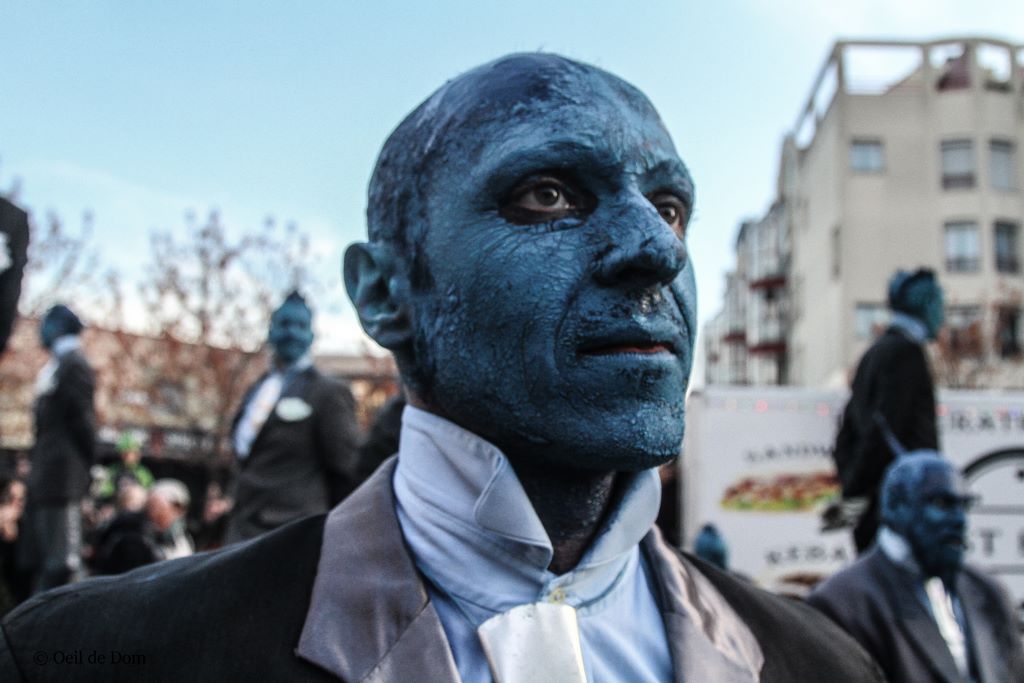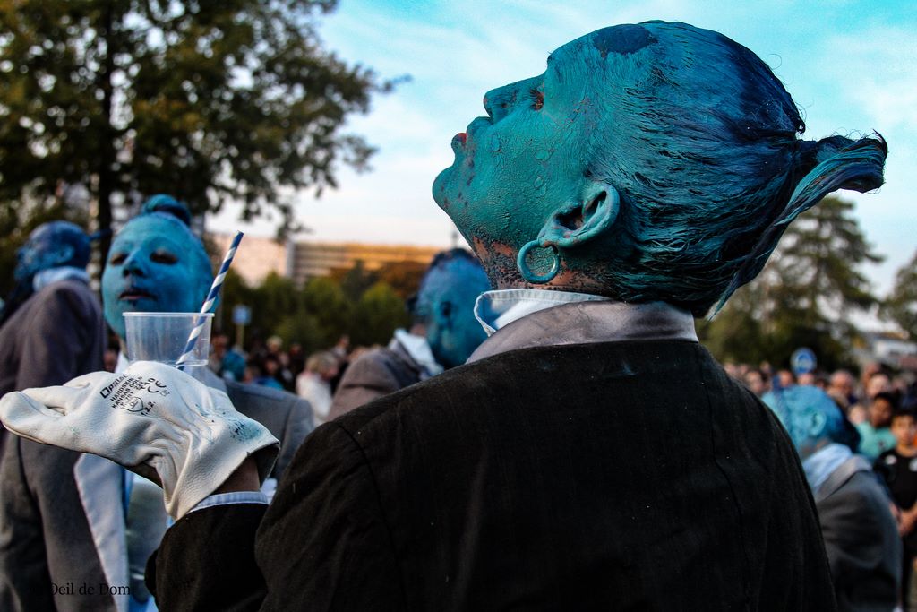 Fin d’une journée ordinaire en centre-ville. Et soudain, sur étendard sonore, un déboulé d’hommes et de femmes bleus prennent la ville à revers.