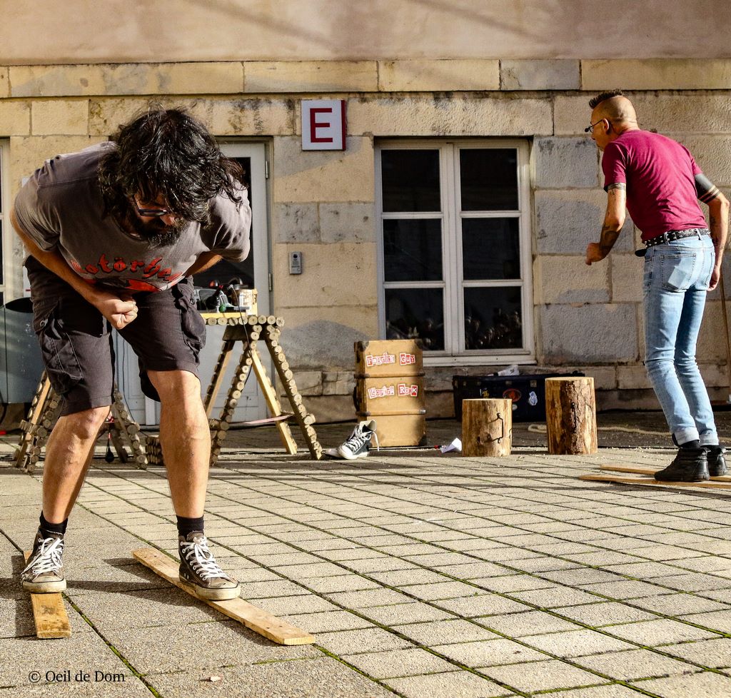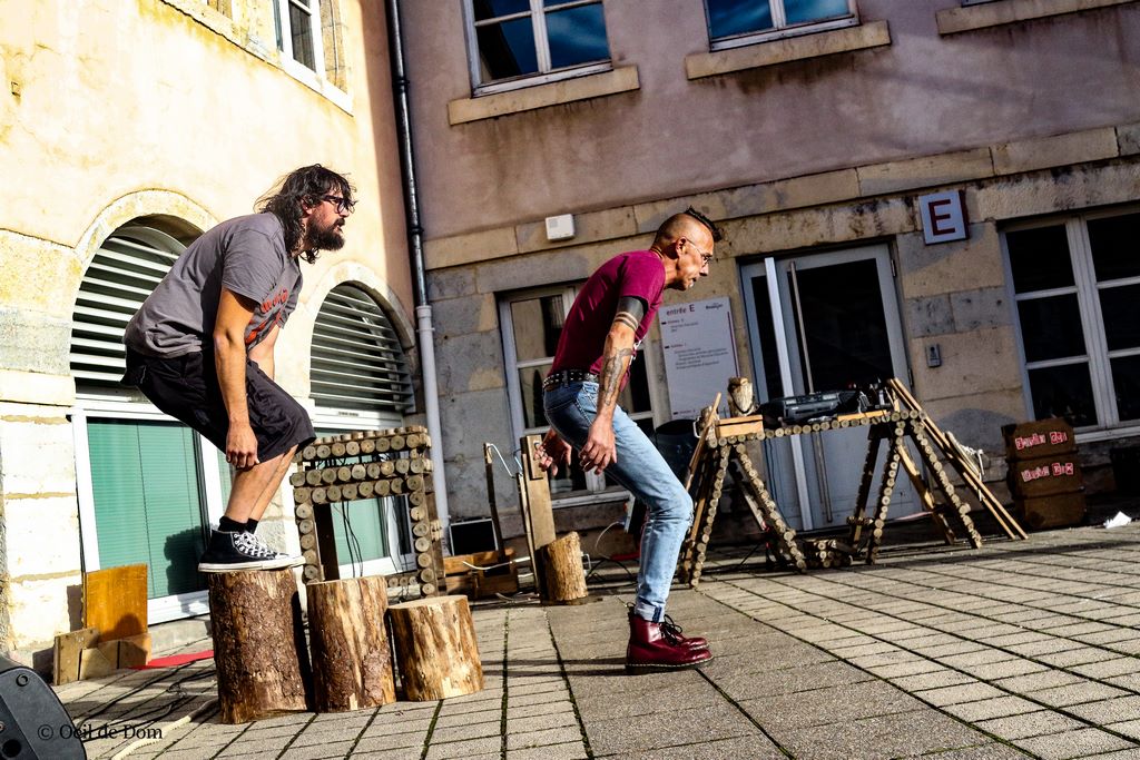 L’un bidouille de la musique sur cassettes, l’autre fabrique des effets spéciaux à base de planches et de vis à bois.