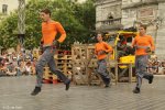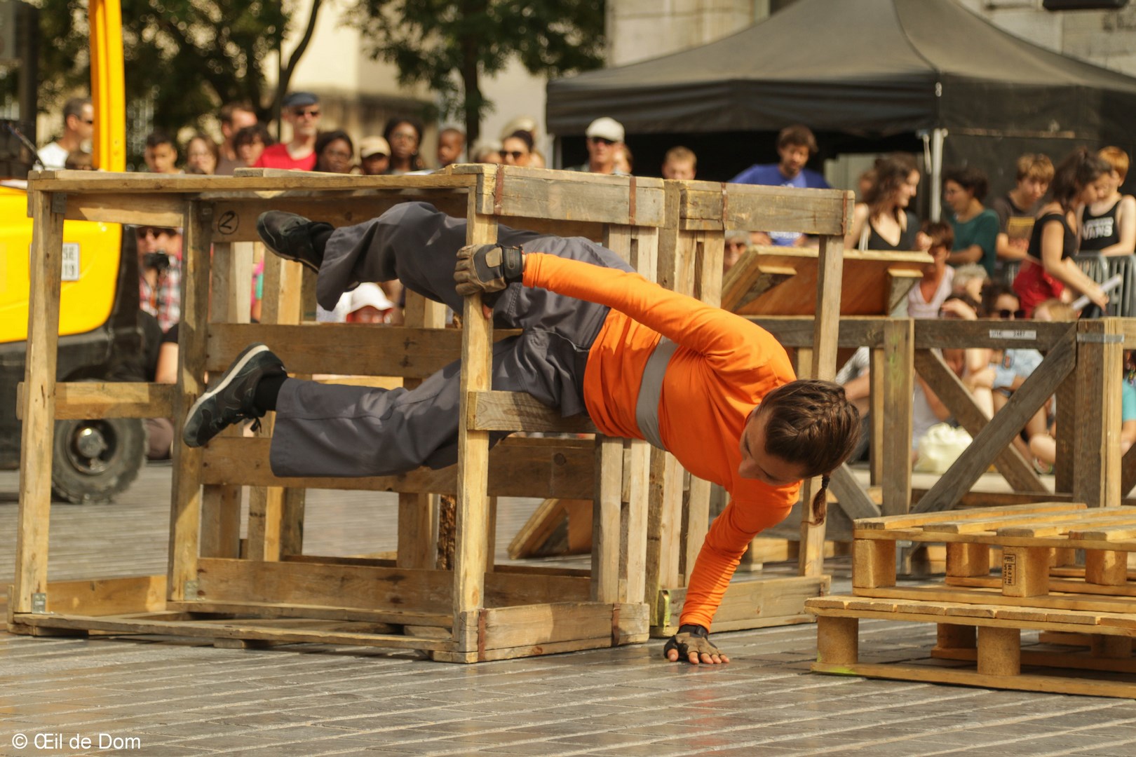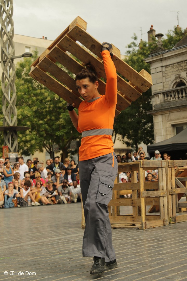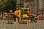 Danse-théâtre pour place publique ou hangar. Un chariot élévateur, 4 interprètes, 1 heure environ.