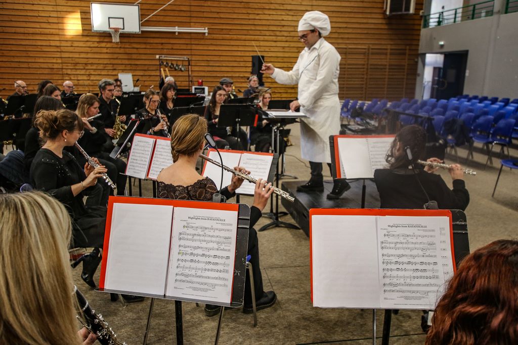 Aujourd’hui une soixantaine de musiciens nous emporte pour un voyage gourmand sous la direction d’un chef gourmand également : Mathieu Guilain,.