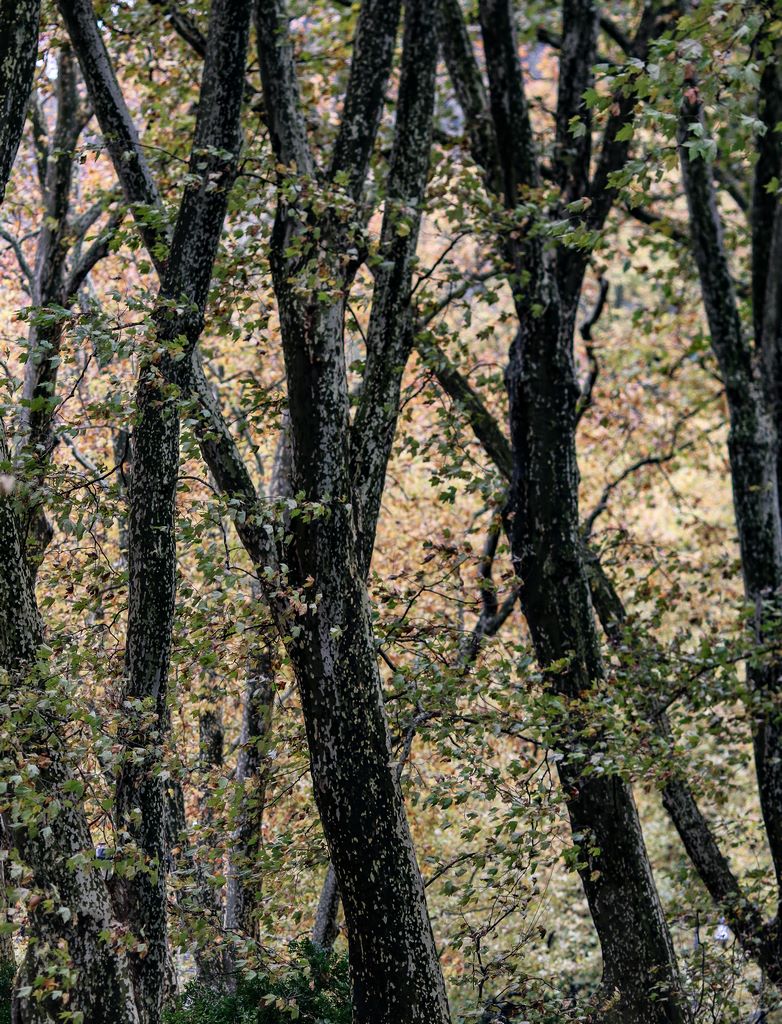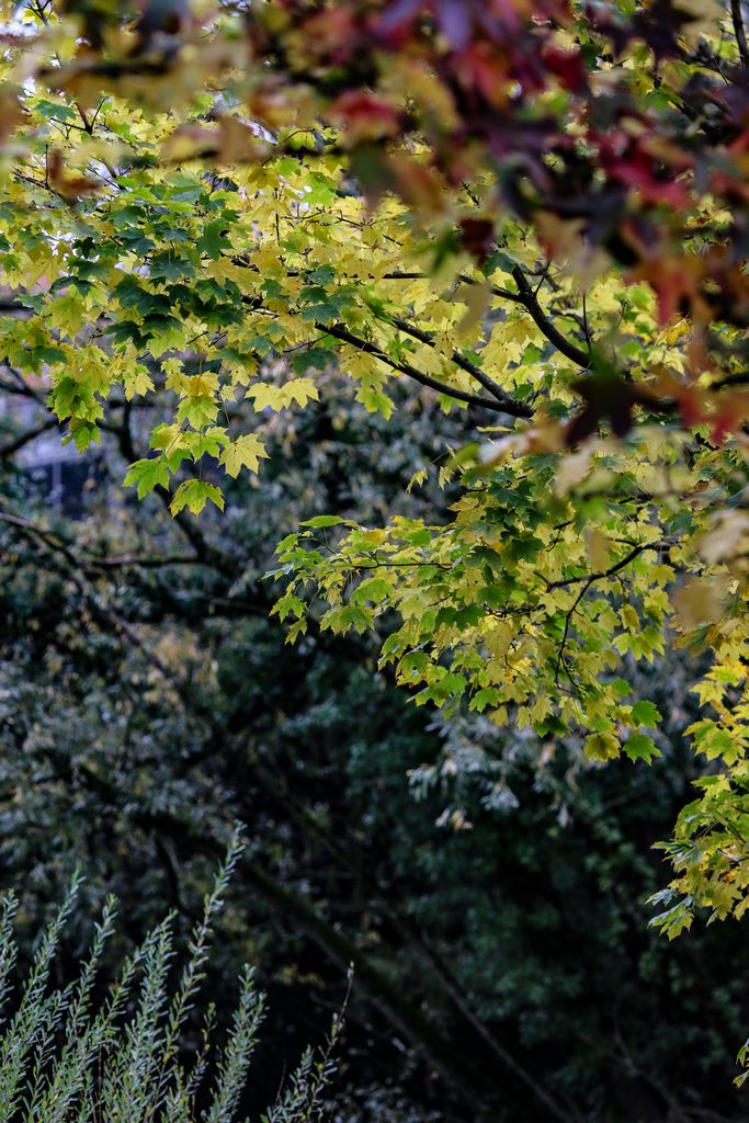 Là, je fais mine de me pâmer devant l’extraordinaire symphonie des couleurs du feuillage automnal.