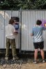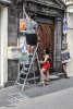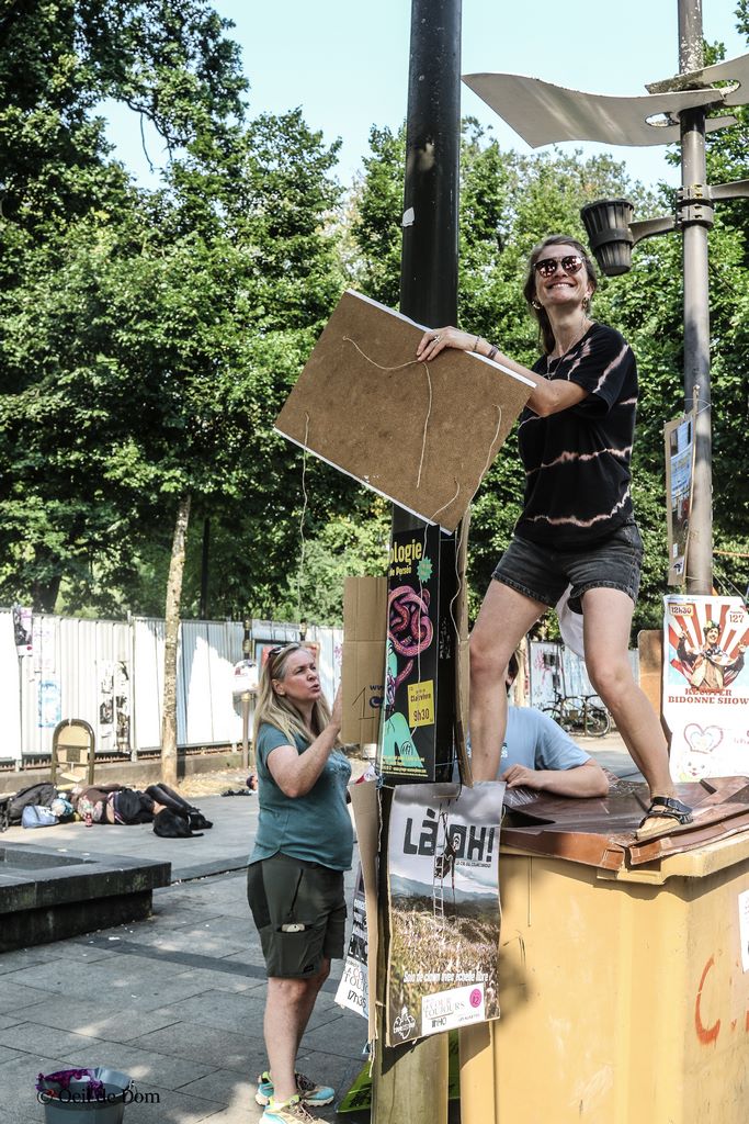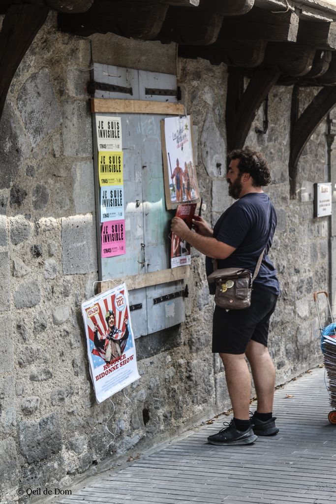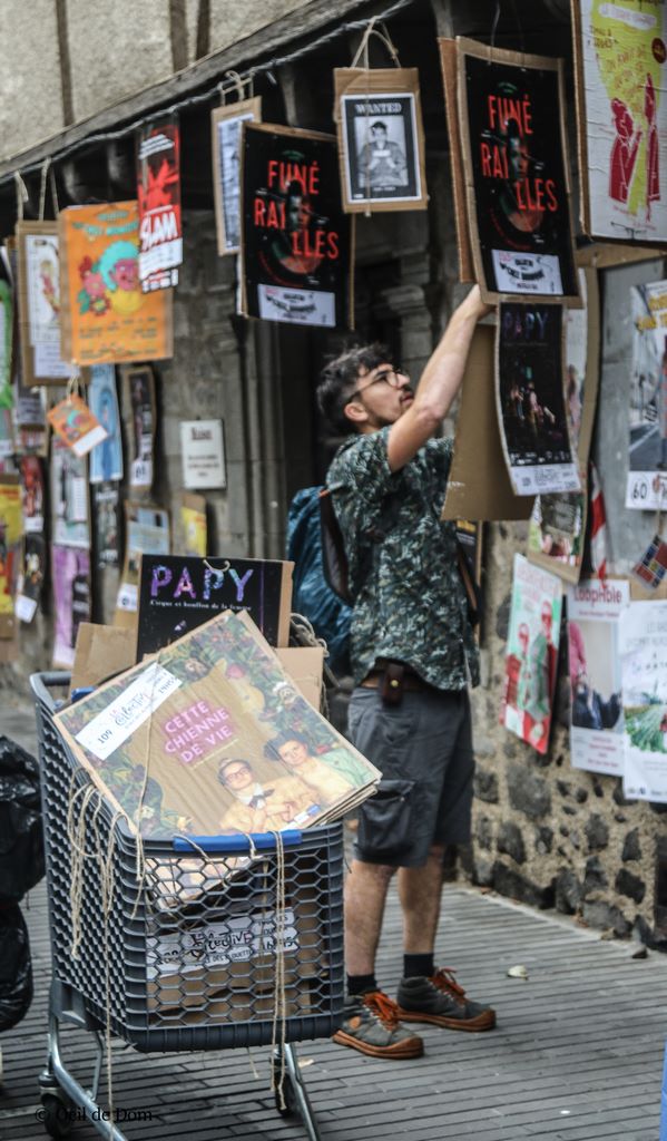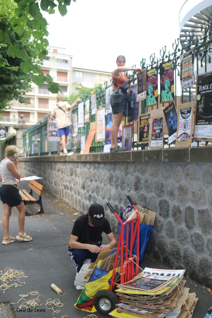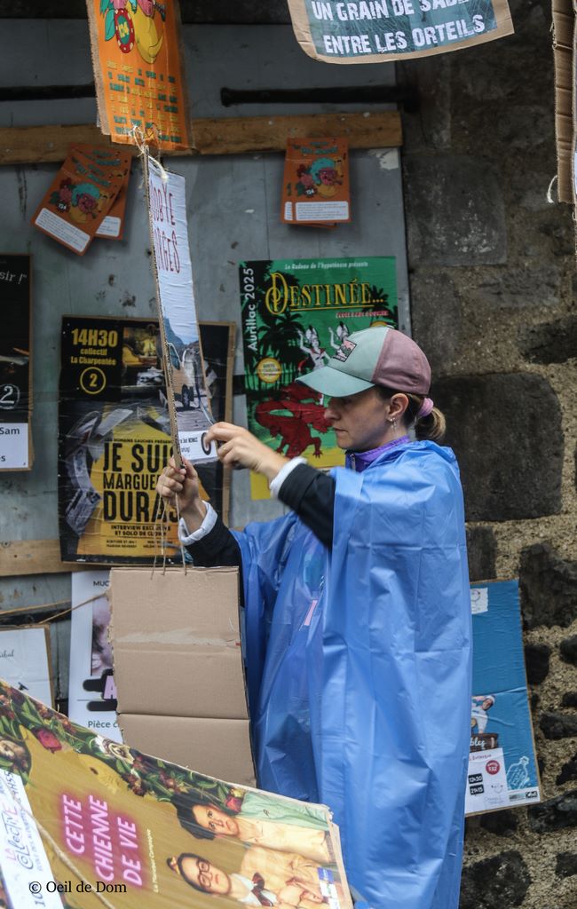 Munis de ficelle, fil de fer, scotch, pinces coupantes ou ciseaux, le tout tiré de sacs, de sacoches du vélo ou de l’indispensable charrette, portant l’escabeau sur l’épaule, ils se mettent à l’œuvre dès le jour -2 du festival.