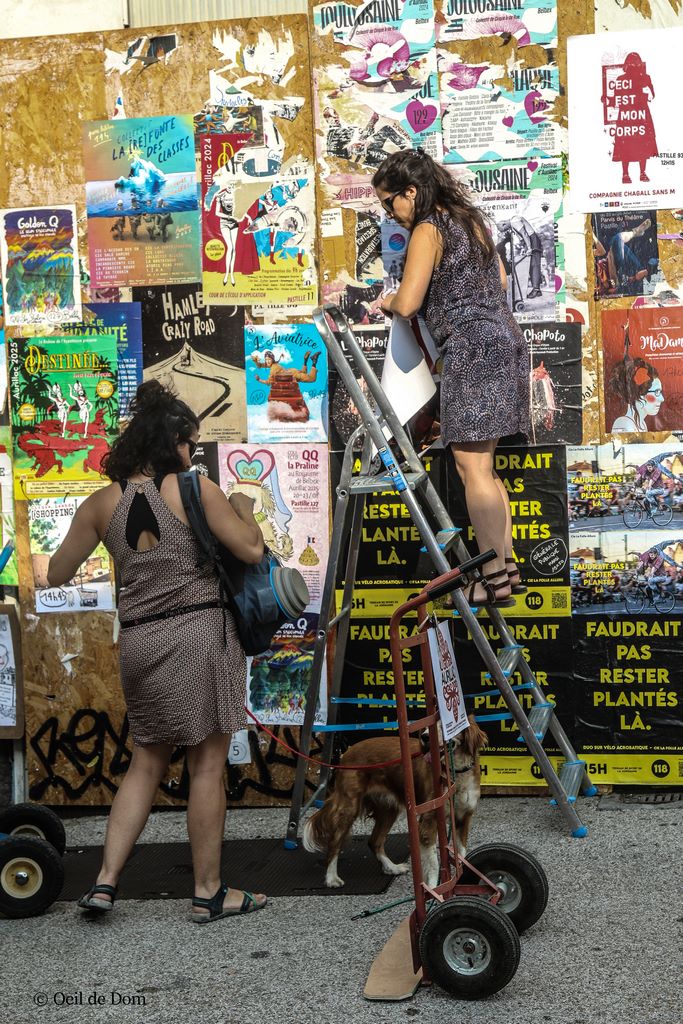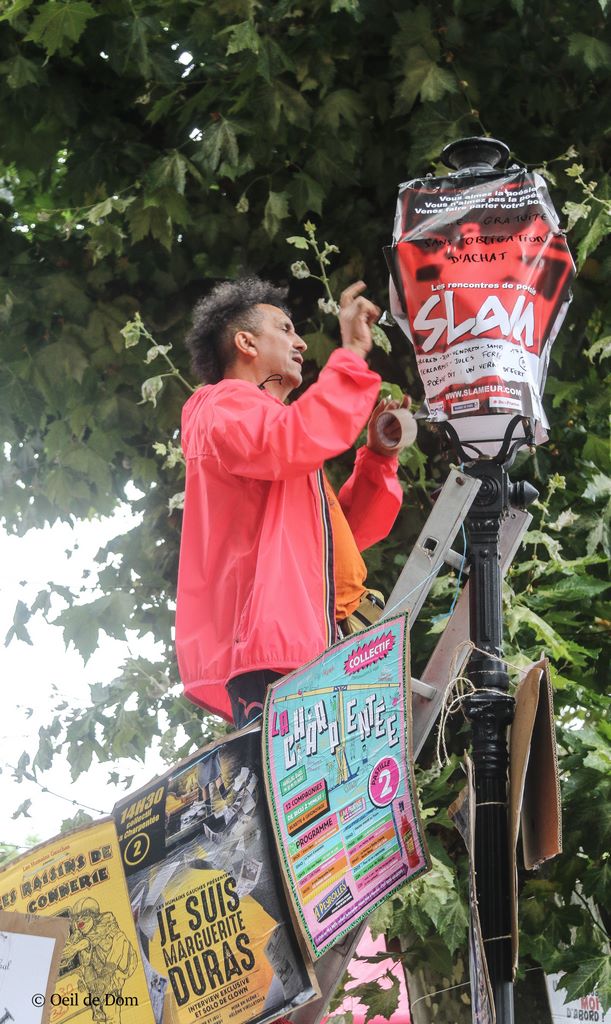 Trouver l’emplacement idéal pour leur affiche, parmi les centaines déjà en place.