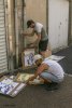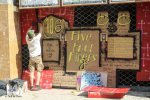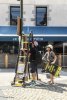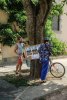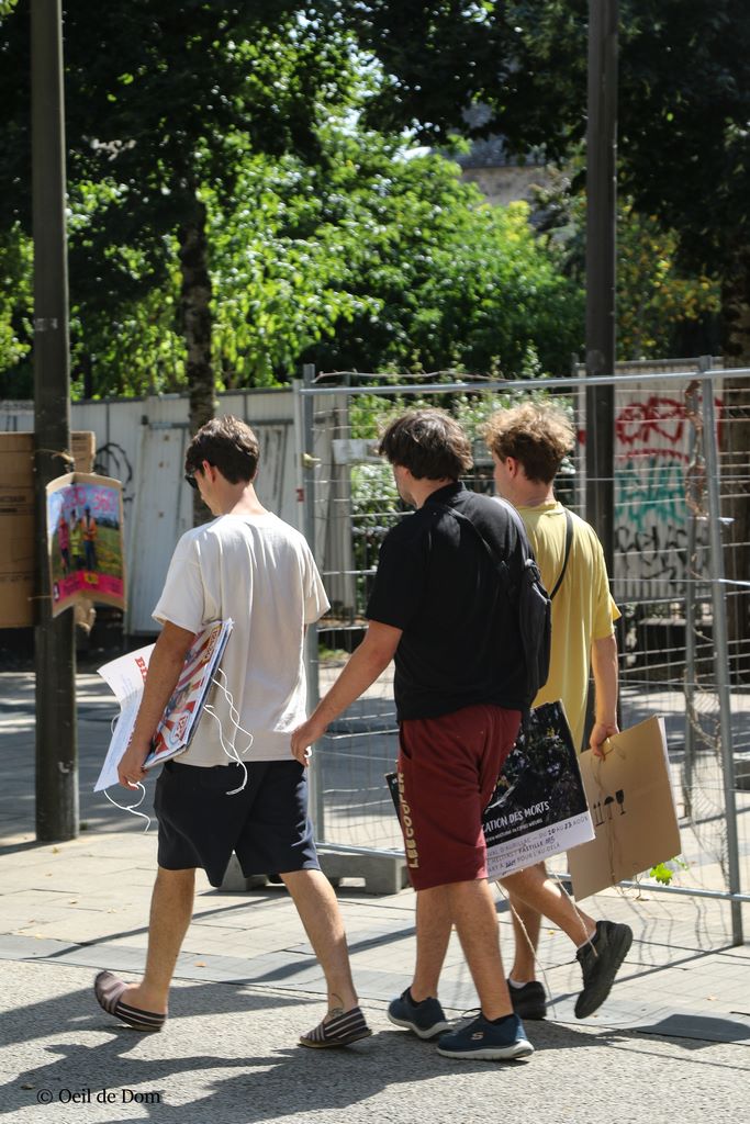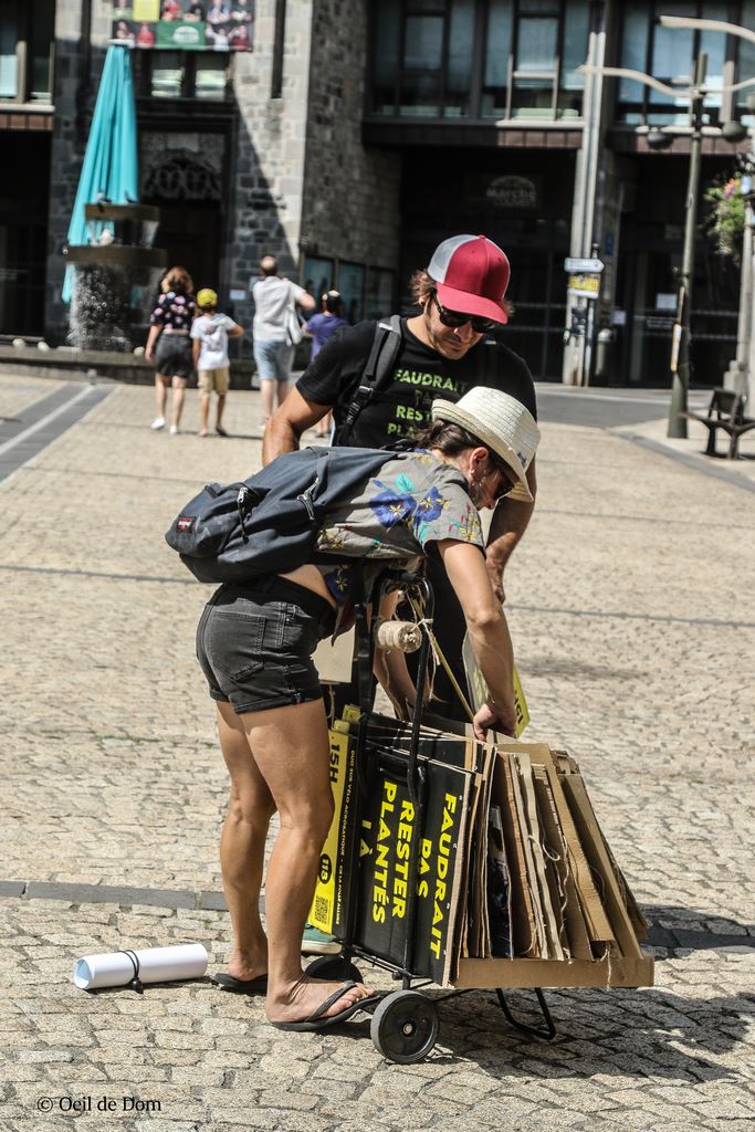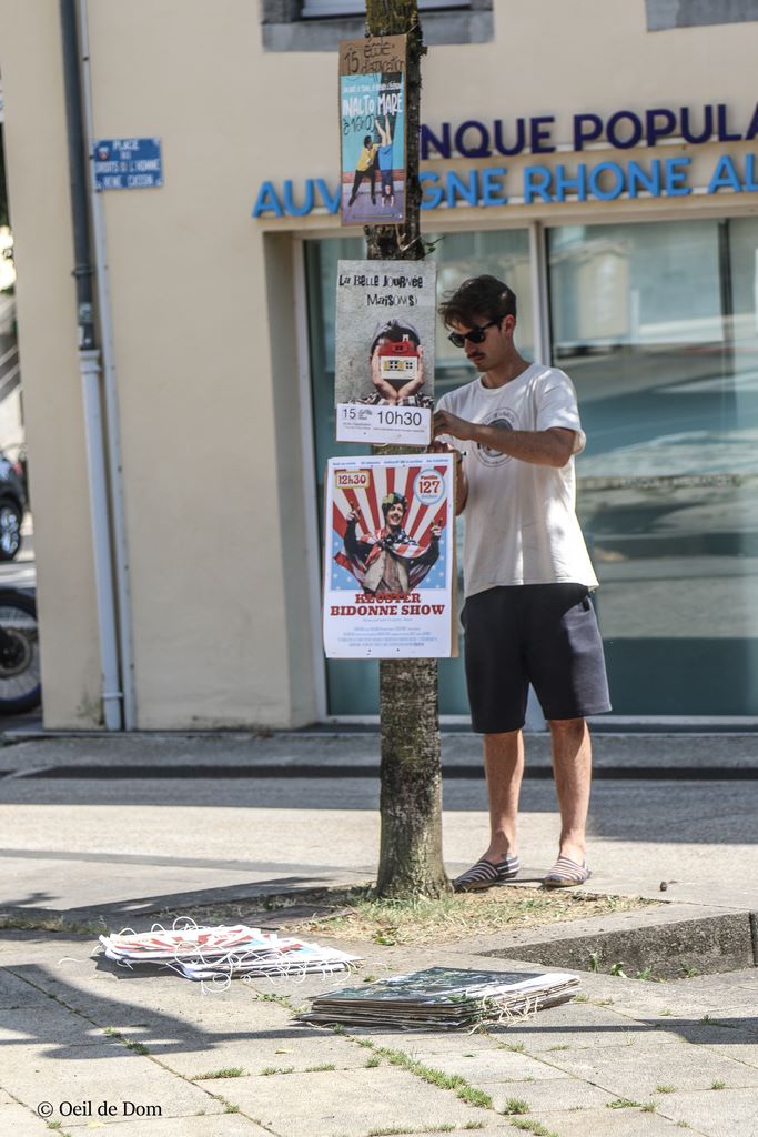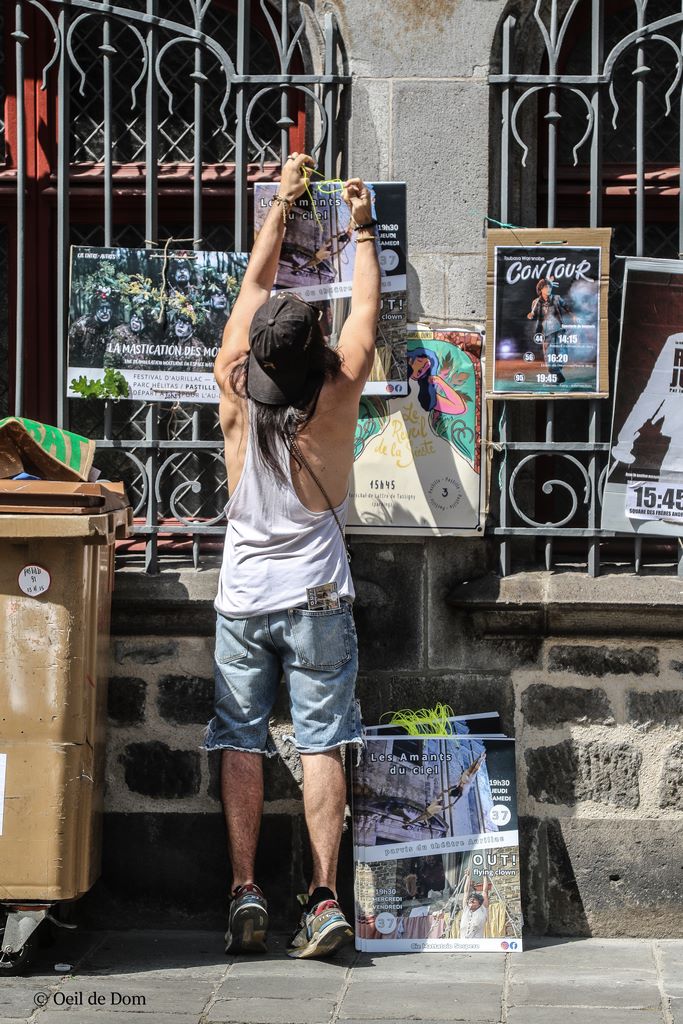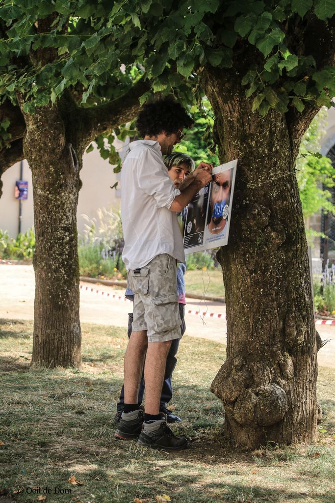 Munis de ficelle, fil de fer, scotch, pinces coupantes ou ciseaux, le tout tiré de sacs, de sacoches du vélo ou de l’indispensable charrette, portant l’escabeau sur l’épaule, ils se mettent à l’œuvre dès le jour -2 du festival.