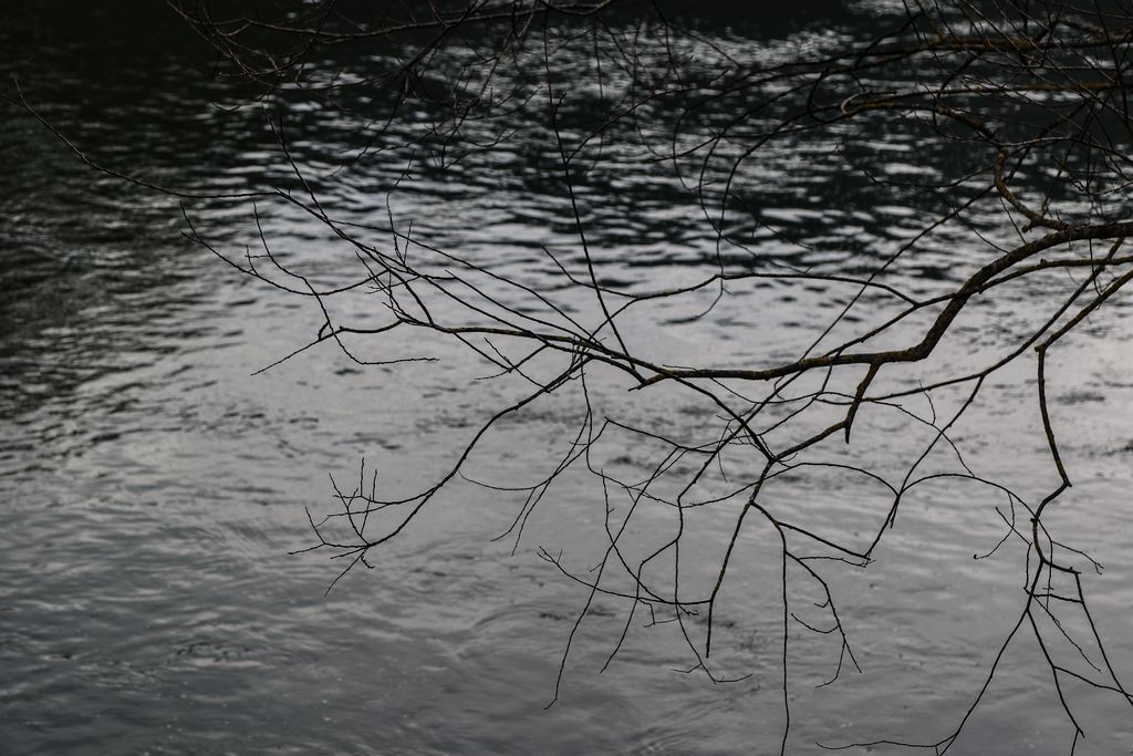 La penseuse/léopard est à la table voisine, les drôles de paroissiennes sont au bout du pont, le Petit Poucet est sur la rive, le ciel couleur de fin des temps est au-dessus de ma casquette, les herbes du diable sont à portée de main, le petit couple attend son heure, les fins branchages battent les flots et....le grizzly est dans l’ascenseur !