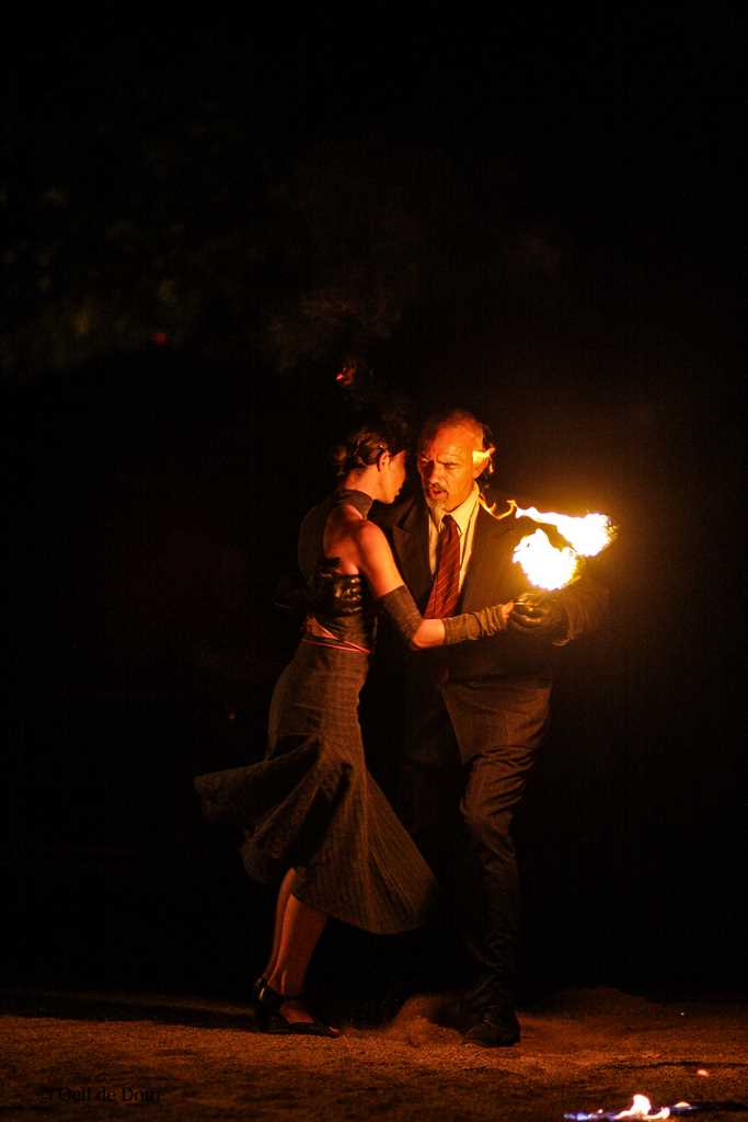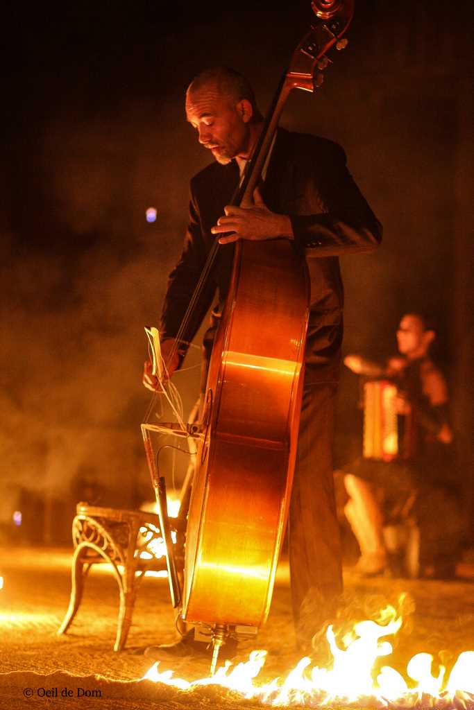 Hervé Perrin, élégance, danse, Tango, feu, contrebasse et coffre fort qui explose...