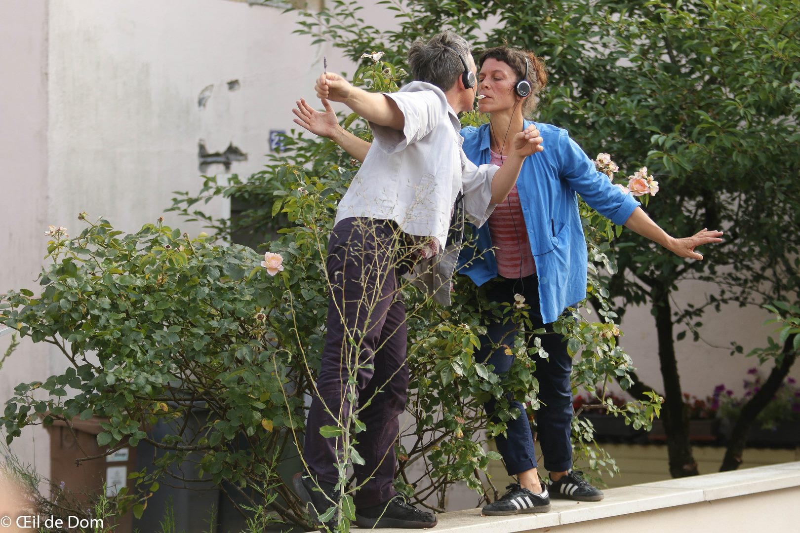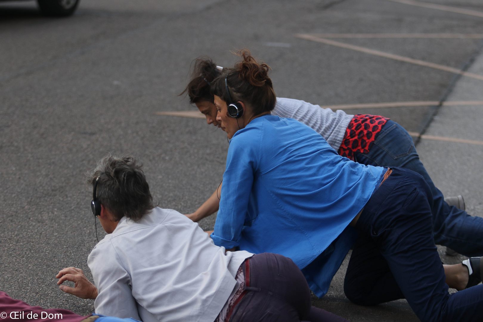 Les oreilles casquées sont enveloppées dans l’organicité de l’espace, les marcheurs suivent les présences et les traces des danseurs, observent les vides et les pleins du bâti, rentrent dans le dessin du quartier.